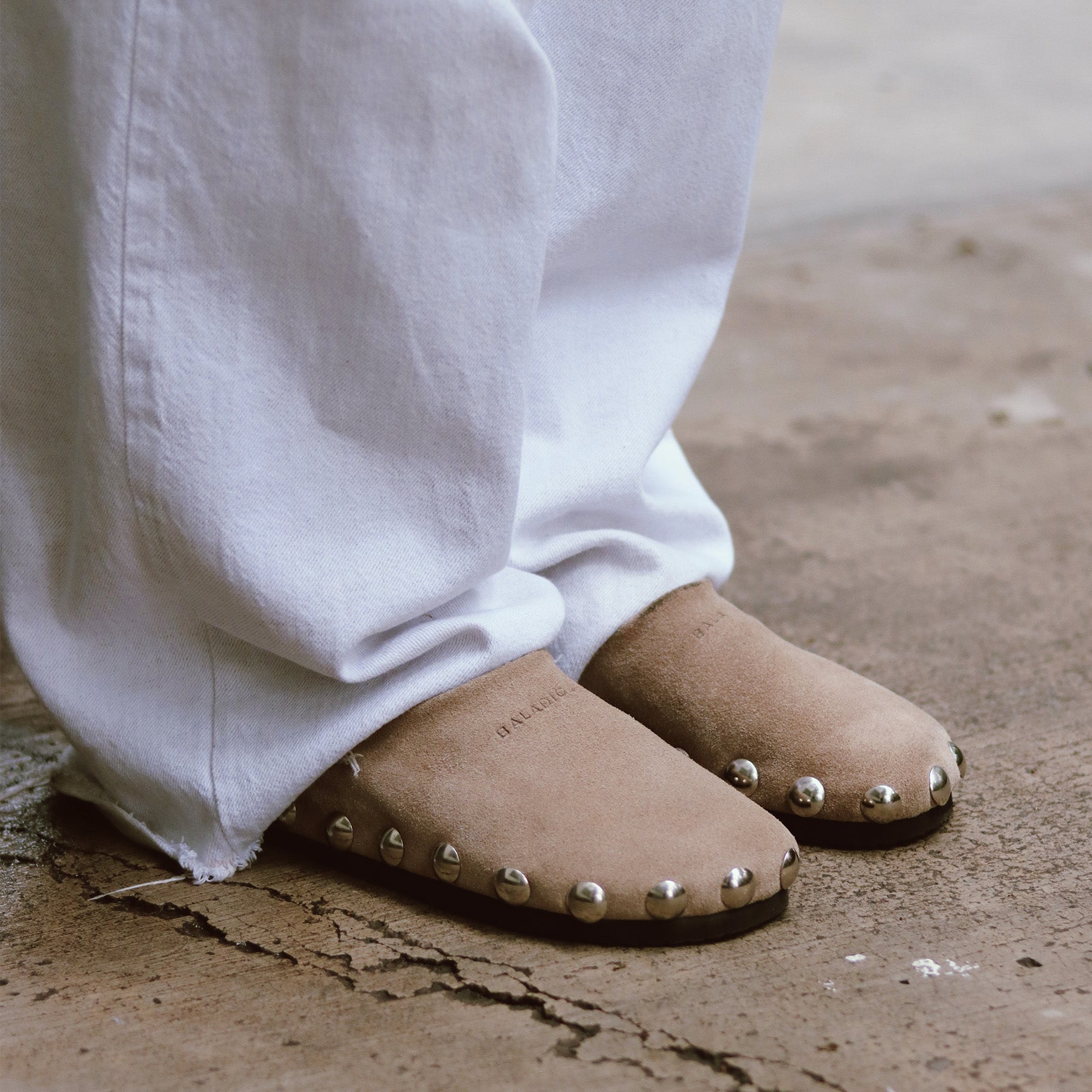 *Hechas en 100% gamuza: PENNY TAUPE CLOGS de BALA DI GALA.